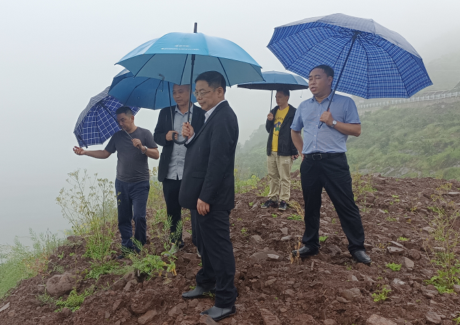 (4月2日,外建集团党委委员、副总经理、总工程师朱国华带队到忠县石宝沿江旅游公路项目督查安全环保工作)
