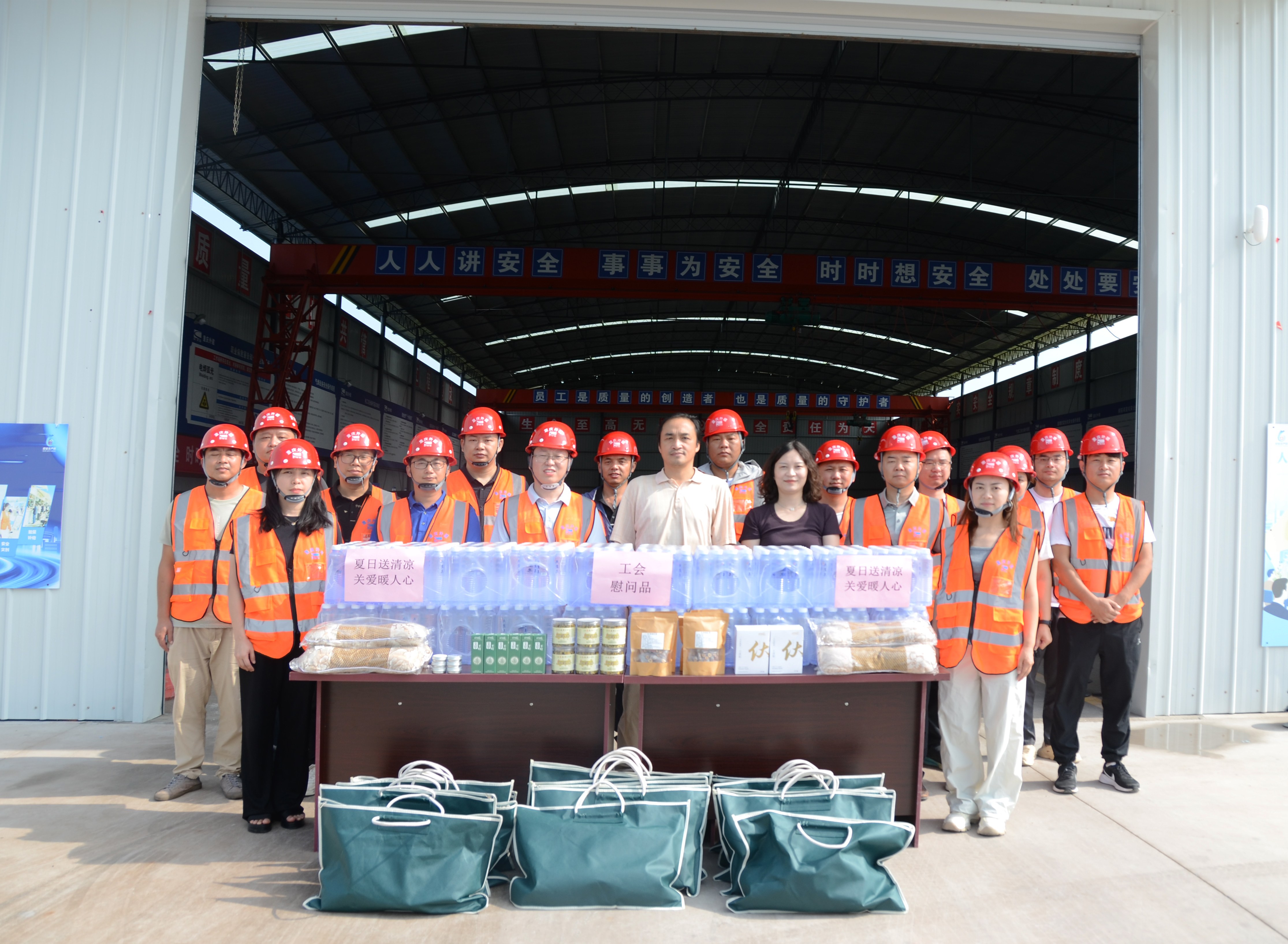 8月12日,外建集团副总工程师黄曼一行前往轨道交通4号线西延伸段站后8标大庆村、花卉园站装饰装修、给排水消防工程项目开展“夏送清凉”慰问活动,为奋战在高温一线的建设者们送去防暑降温物资。对职工们的辛勤付出表示衷心感谢,特别叮嘱要切实做好防暑降温措施,在保障工作质量的同时确保职工身体健康。