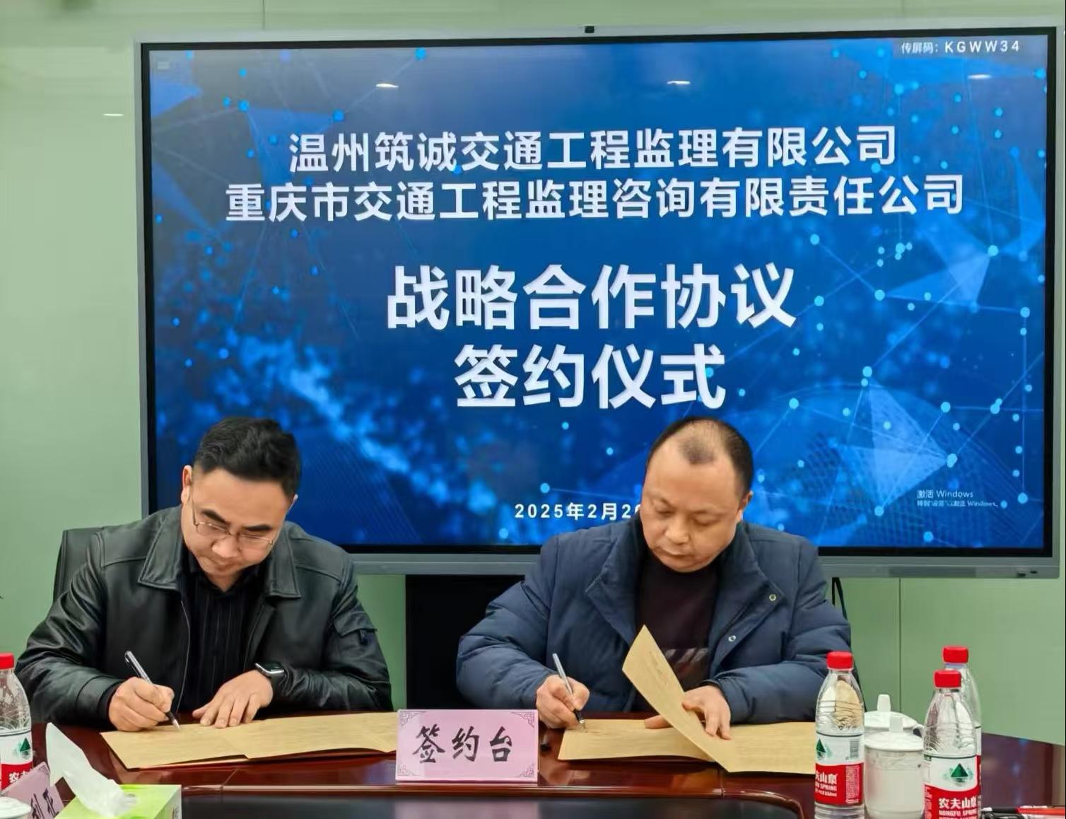 重庆交通开投外建集团监理公司与温州筑诚交通工程监理有限公司签署战略合作协议