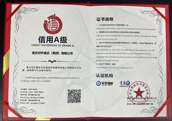 近日,中国对外承包工程商会发布了2022年企业信用等级评价结果。重庆外建集团再次获得AAA级,这是集团连续第12年获此最高信用等级评价。