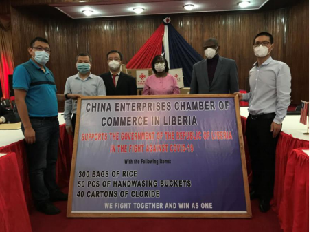 外建集团利比里亚分公司作为代表向利中资企业发放“健康包”并参与防疫物资捐赠活动